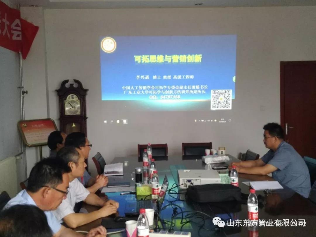 6月6日,在東方管業(yè)公司會(huì)議室,東方管業(yè)邀請(qǐng)中國(guó)人工智能學(xué)會(huì)(CAAI)可拓學(xué)專業(yè)委員會(huì)副主任兼秘書(shū)長(zhǎng)、現(xiàn)任廣東工業(yè)大學(xué)可拓學(xué)與創(chuàng)新方法研究所副所長(zhǎng)李興森教授(中國(guó)管理現(xiàn)代化研究會(huì)理事,中國(guó)創(chuàng)造學(xué)會(huì)理事),對(duì)管業(yè)公司廣大管理人員進(jìn)行了《可拓思維與營(yíng)銷創(chuàng)新》的培訓(xùn)。